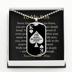 To My Son “I Walk in the Prayers the Ancestors Prayed” Black King Minimalist Necklace