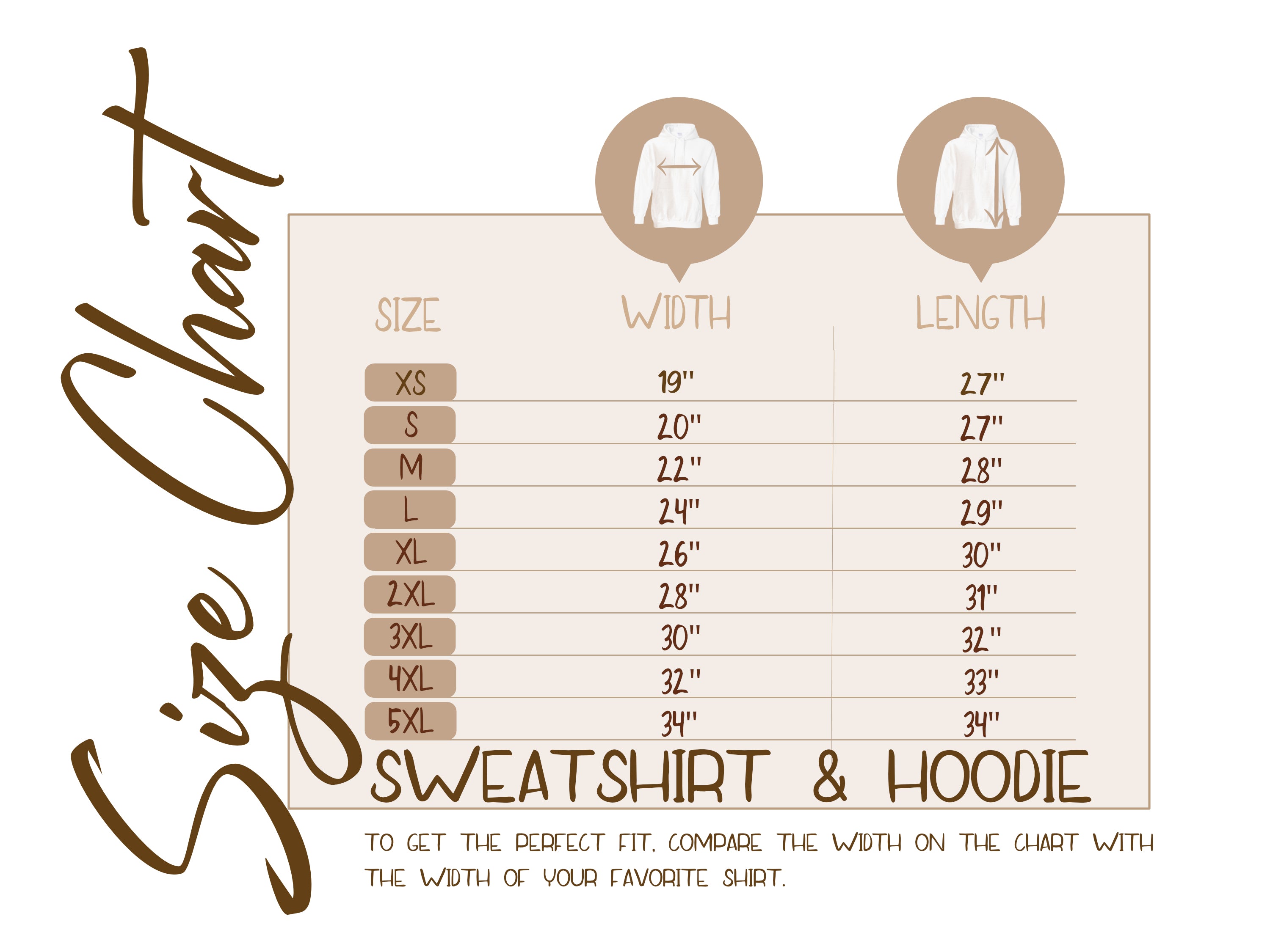 Sizing Tip: Lay your favorite sweatshirt flat, measure it across the chest, armhole to armhole, and compare to our size chart for your best fit.