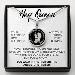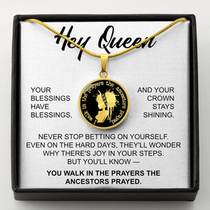 Hey Queen Minimalist Necklace – Inspirational Jewelry for Black Women | “I Walk in the Prayers the Ancestors Prayed” Pendant